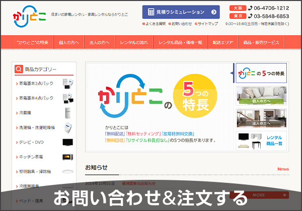 - 充実したアイテムを10,000点以上、家電・家具レンタル業界では最大級の品揃え。
