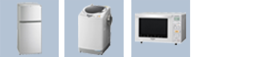 洗濯機、冷蔵庫、電子レンジの生活家電の必須アイテムをお得なセットで! 各アイテムはグレードアップ(16V型TVを19V型へ等)した組み合わせでレンタルすることも可能です。